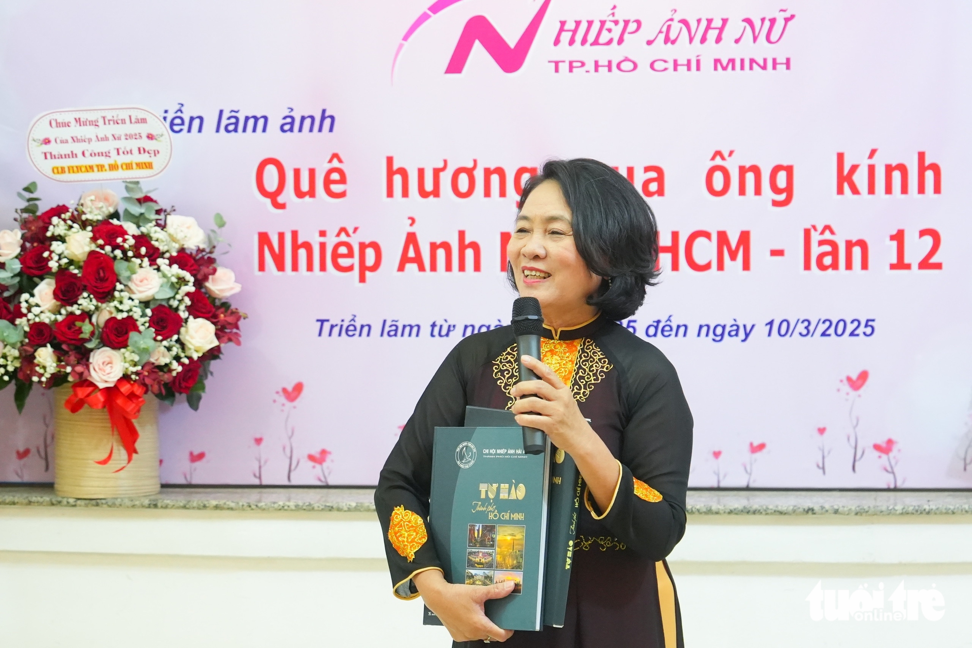 Nghệ sĩ nhiếp ảnh Thu Ba giới thiệu sách ảnh Tự hào TP.HCM - Ảnh: HỮU HẠNH