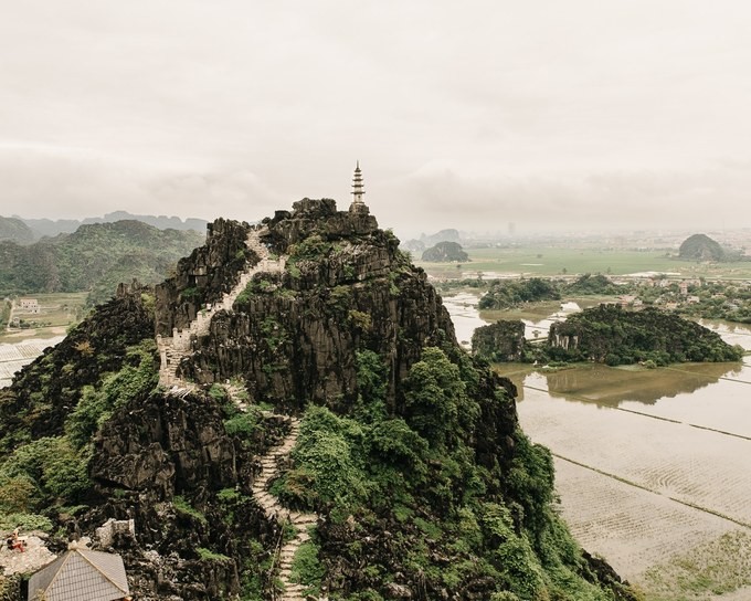 Khi leo gần 500 bậc thang lên hang Múa, du khách sẽ phóng tầm mắt chiêm ngưỡng được toàn bộ vẻ đẹp của khu vực Tam Cốc.