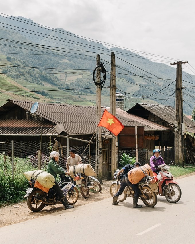 “Thực hiện những câu chuyện bằng ảnh là cách duy nhất tôi có thể chia sẻ ý tưởng và cảm xúc của mình về một chủ đề nhất định”, Faingnaert nói. Trong ảnh là cảnh người dân dùng xe máy vận chuyển hàng hóa trên tuyến đường Hà Nội - Mù Cang Chải.